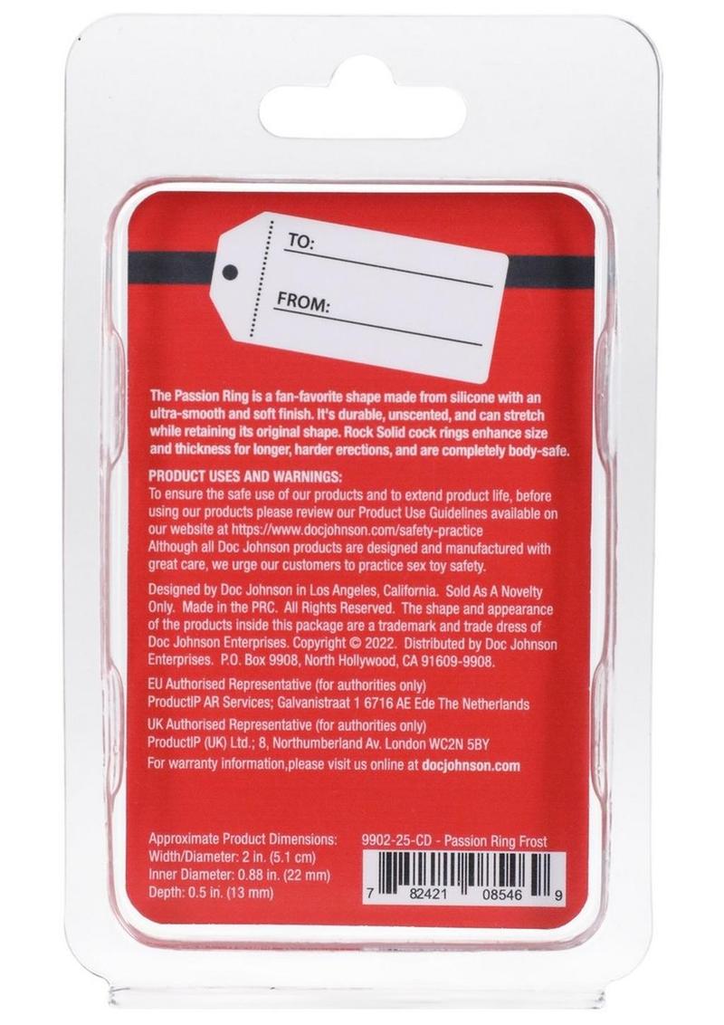 The Passion Ring is a fan-favorite shape made from silicone with an ultra-smooth and soft finish. It's durable, unscented, and can stretch while retaining its original shape. Rock Solid cock rings enhance size and thickness for longer, harder erections, and are completely body-safe.