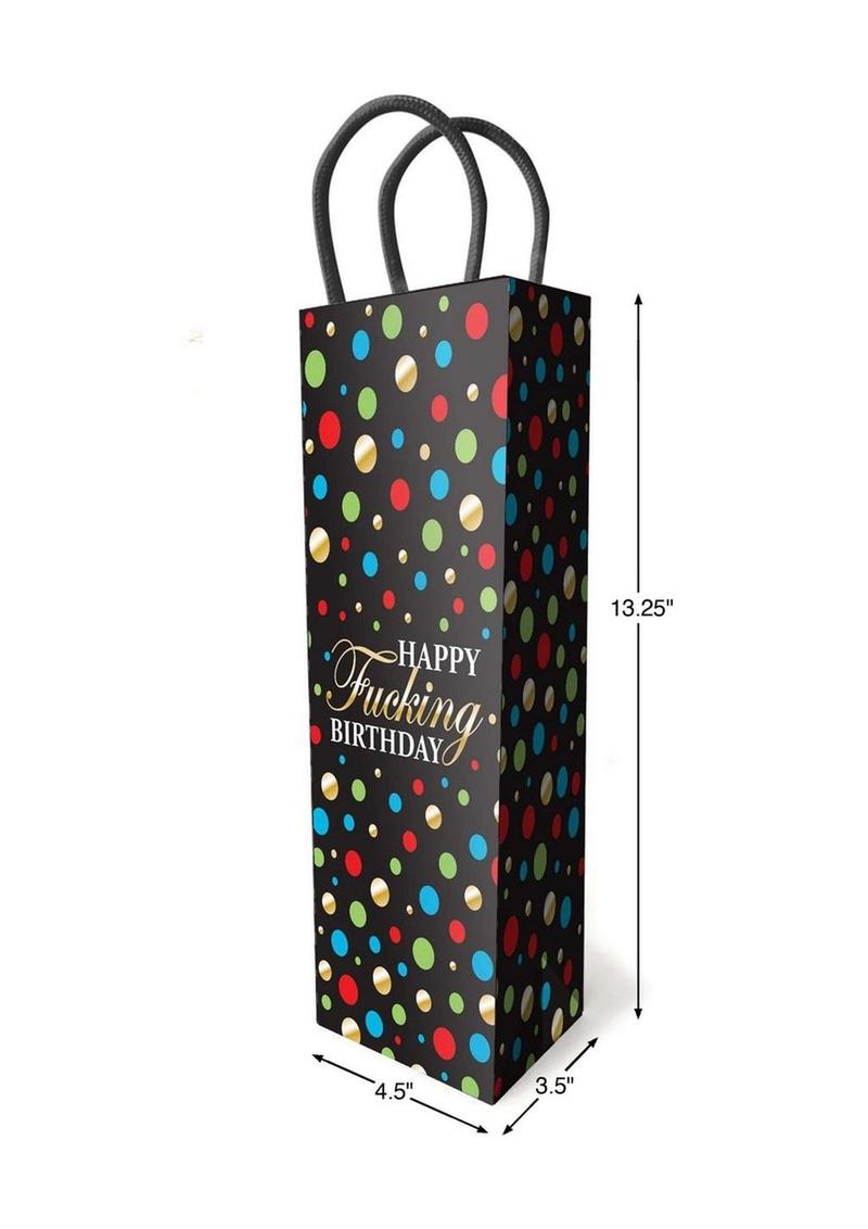 Gifting has never been more fun than with the Happy Fucking Birthday Gift Bag. Unlike other gift bags, youb ll be proud to wrap your naughty gift in this playful wine sized bag. High quality, unique luxury gift bags made of thick, sturdy card stock paper with elegant woven handles, this delightful bag is as fun to give as it is to receive.