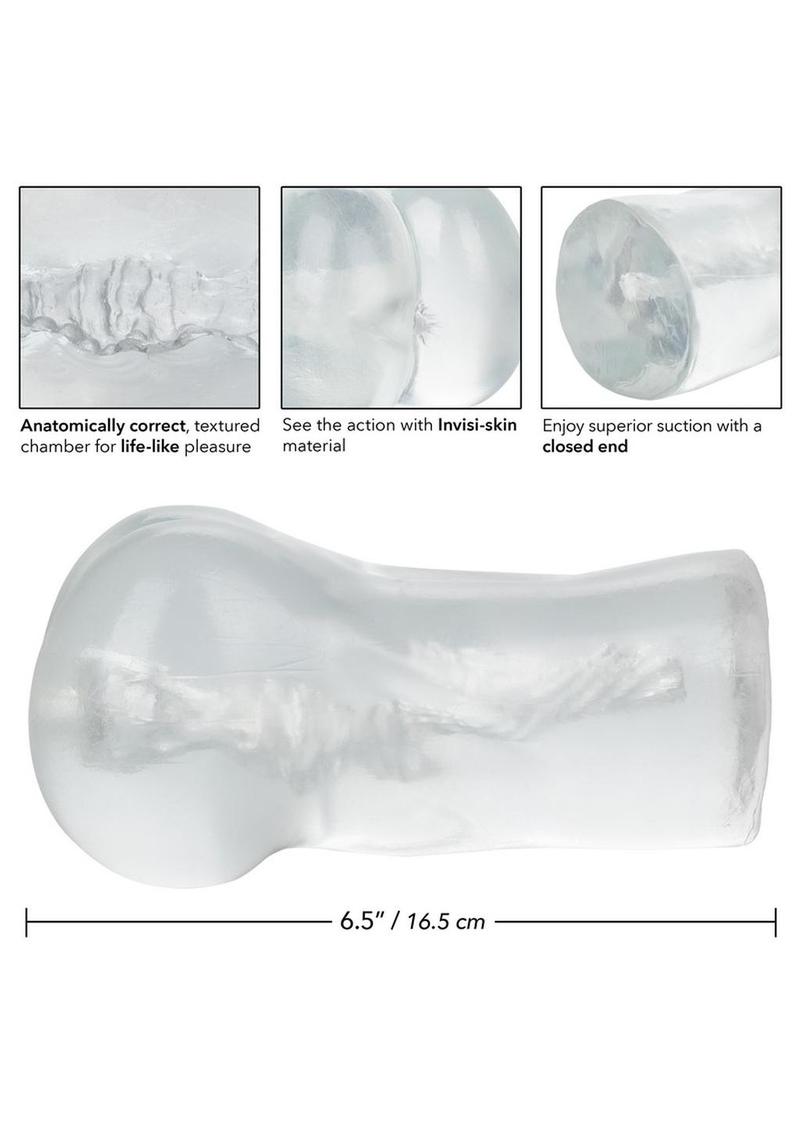 The indulgent stroker has a textured, anatomically correct chamber for explosive stimulation. Use this close-ended sleeve with ample lubrication for powerful suction worthy of your naughtiest fantasies. Invisi-Skin Thermoplastic Elastomer is a super-soft, ultra stretchy material with a unique, life-like feel delivering pure satisfaction in every stroke.