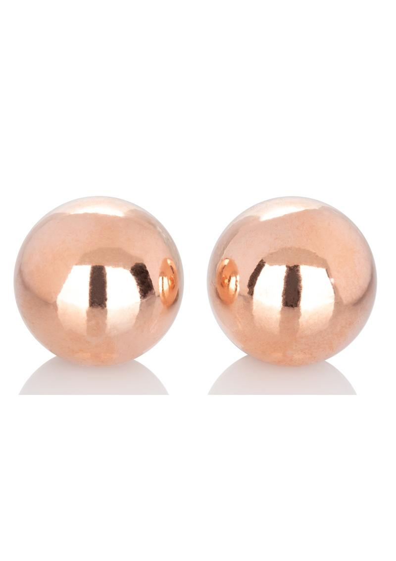 The blushing Climax Weighted Ballsb" are sculpted to naturally increase stimulation, improve sexual satisfaction and increase pelvic muscle strength. Increase sexual arousal and delightful stimulation as the petite weights ripple in harmony with your every movement. Naturally tone and tighten pelvic muscles to improve orgasm intensity and reduce risk of incontinence. The carbon-free steel is electroplated for a blushing copper color. Each weight diameter measures 0.75b (2 cm).
